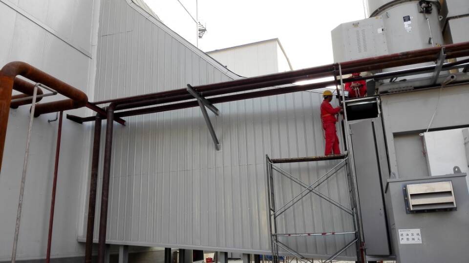 天津華電北辰分布式能源站噪聲治理項(xiàng)目發(fā)包方為華電重工股份有限公司,業(yè)主為中國(guó)華電科工集團(tuán)有限公司。施工內(nèi)容包含了吸隔聲墻體供貨及安裝、隔聲門(mén)制作供貨及安裝、彩鋼板安裝、集控室內(nèi)裝飾等。